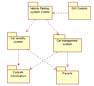 The various classes formed will be residing in the above packages. The main package is our system interface with association with the other packages that made up the whole functioning system. The lower level packages are the carpark information and the people packages. They form the database of the system. The rest consist of security as well as the maintenance of the system for the system user and member usage.